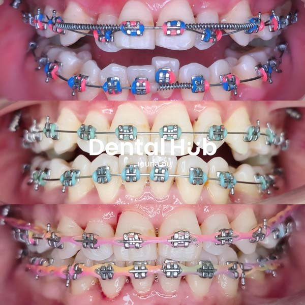 จัดฟันแบบติดเหล็กใส่ยางสี