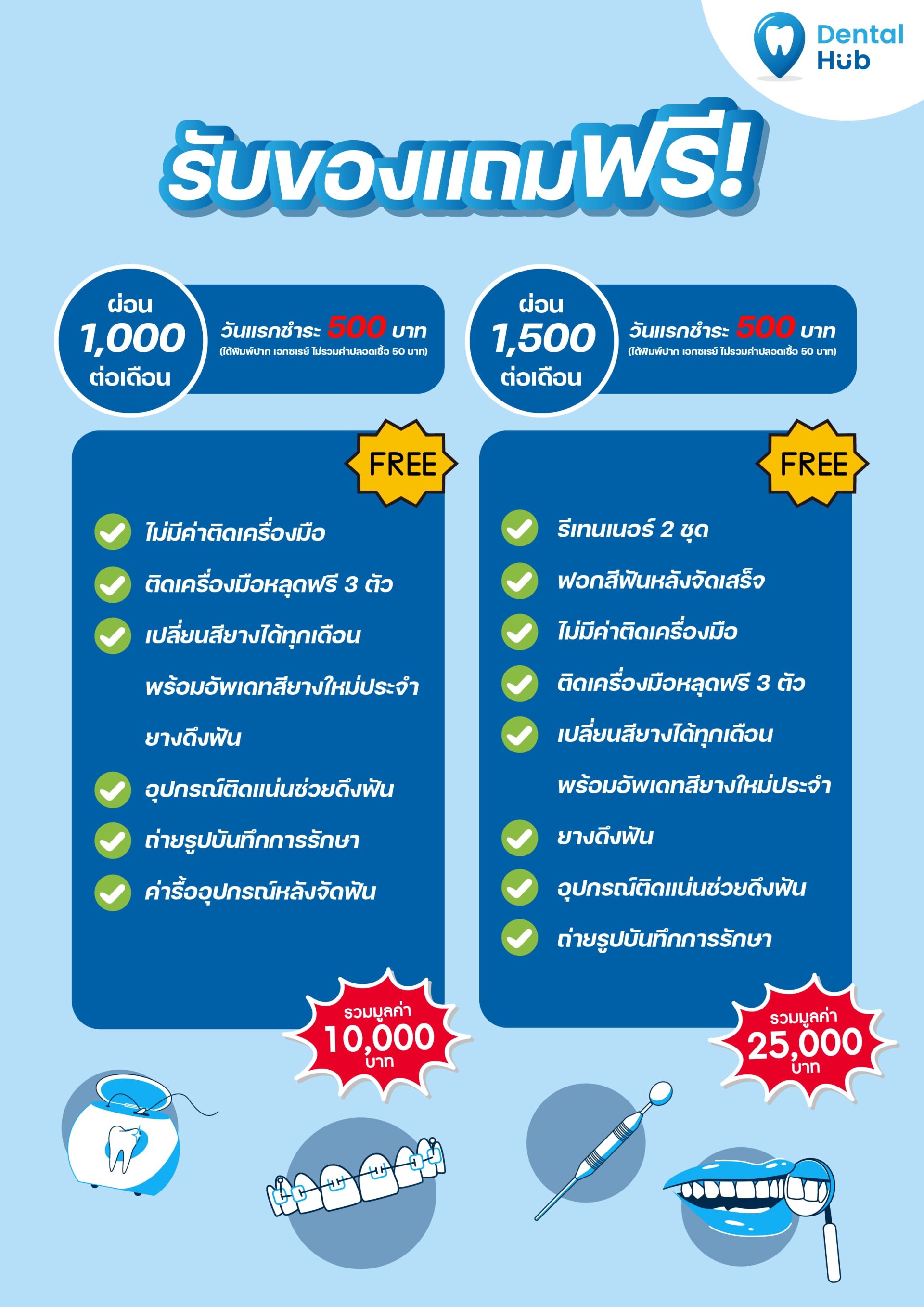 หากขาดการรักษาเกิน 2 เดือน จะปรับเป็นโปรโมชั่นชำระเดือนละ 1000 บาท จนเสร็จ และไม่ได้ของแถม