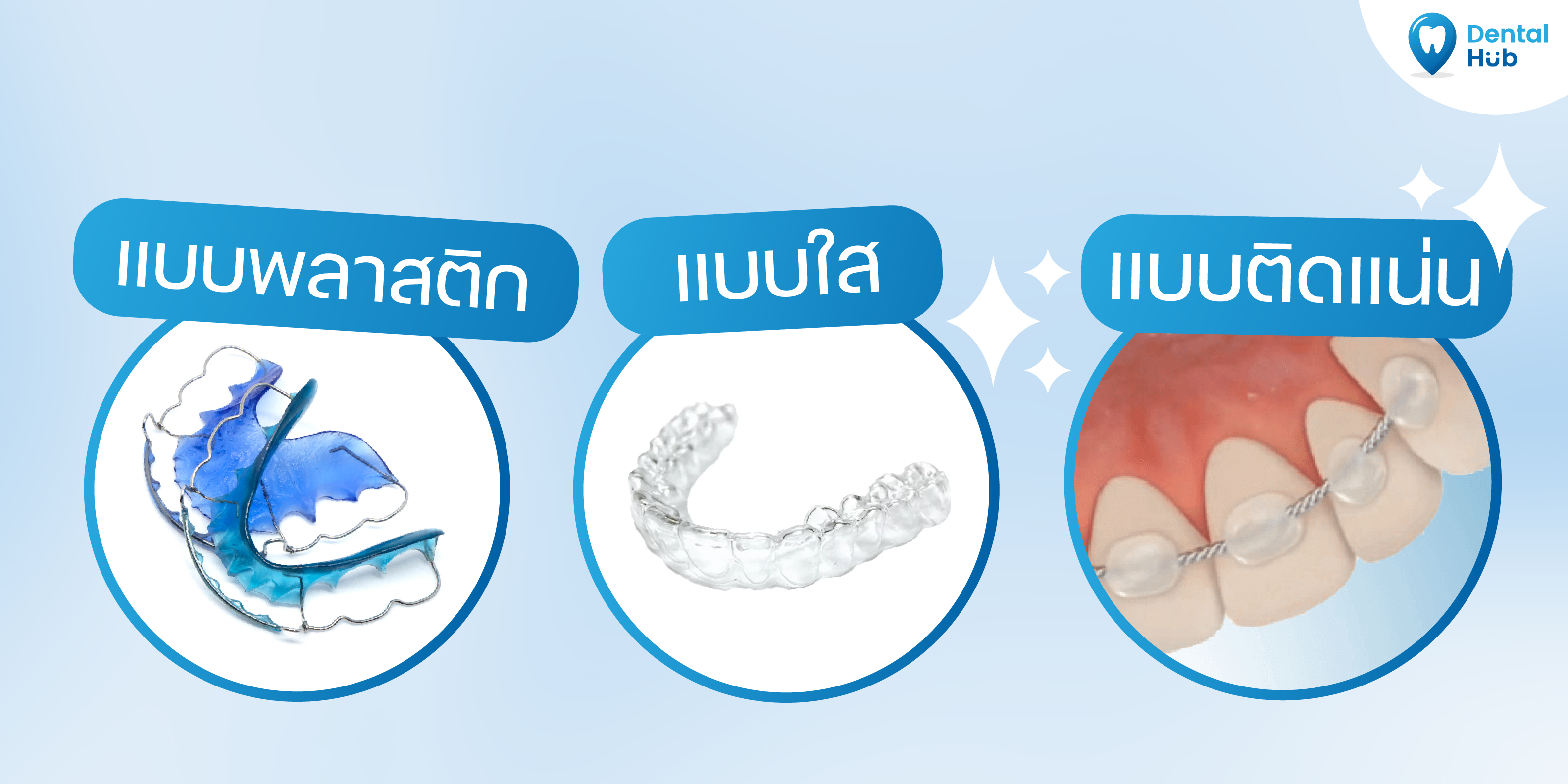 1. รีเทนเนอร์มี 3 แบบด้วยกันคือ แบบลวด แบบใส และแบบติดแน่น