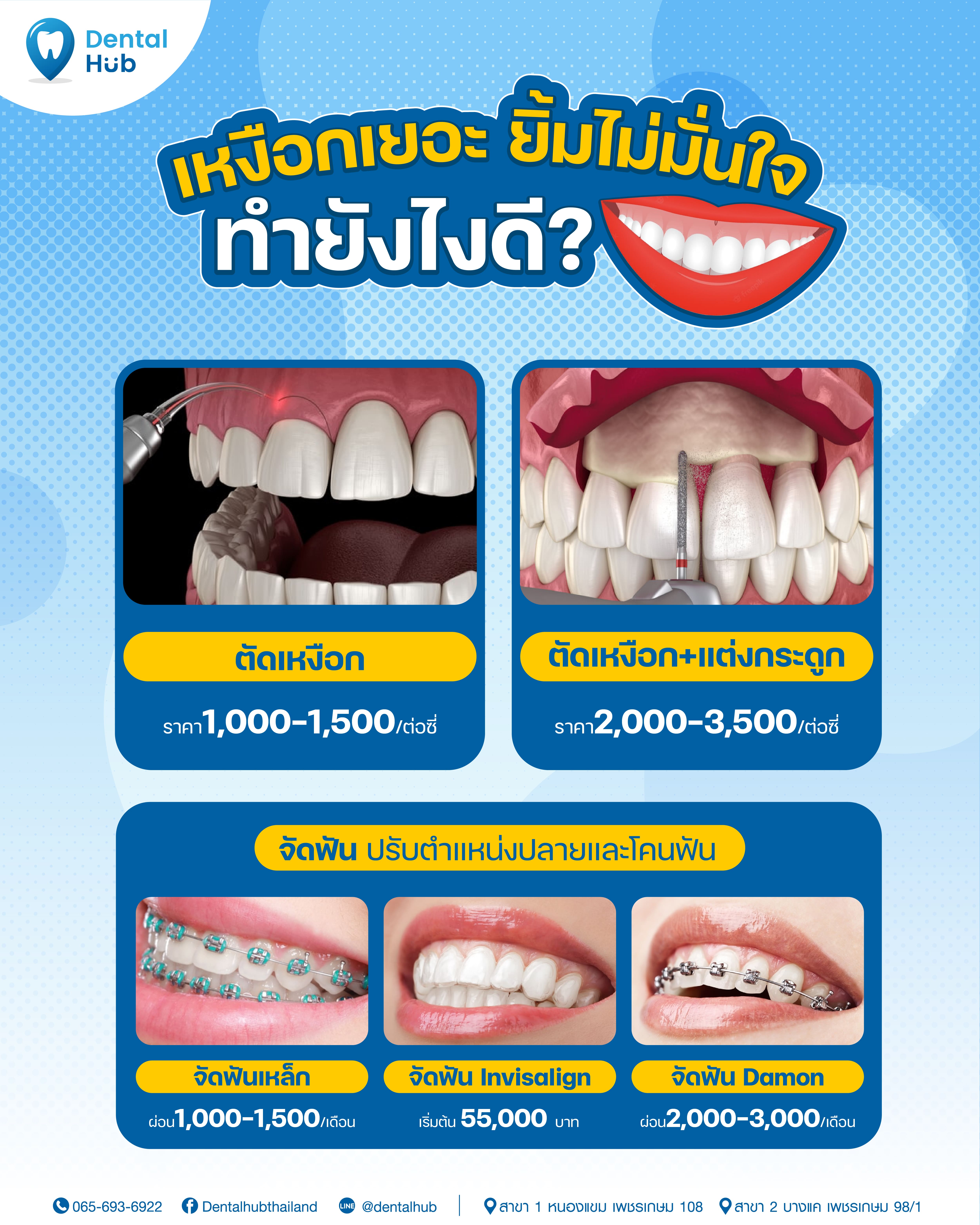 หากคุณเป็นคนหนึ่งที่มีปัญหายิ้มเห็นเหงือกเยอะก็สามารถเข้ามาปรึกษาคลินิกเดนทัลฮับเพื่อให้คุณหมอช่วยวางแผนการรักษาที่เหมาะสมที่สุดนะคะ